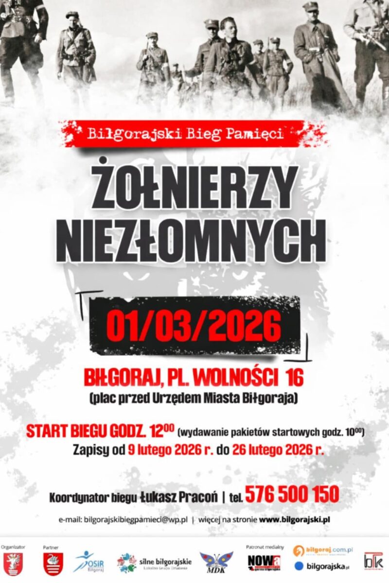 Już 1 marca zapraszamy na kolejną edycję Biłgorajskiego Biegu Pamięci Żołnierzy Niezłomnych!To doskonała okazja, by połączyć sportową rywalizację z pamięcią