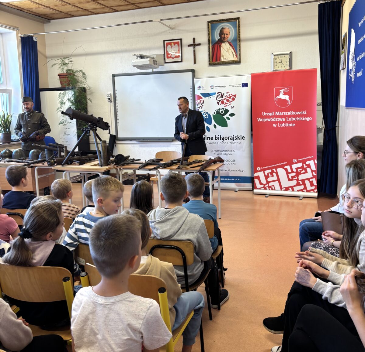 Żywa lekcja historii w Szkole Podstawowej w Woli Radzięckiej w Gmina Frampol. To kolejne spotkanie z uczniami w ramach projektu